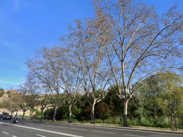A la imatge, plàtans morts del passeig del Riu, a la vorera dels costat del riu per on passa el col·lector de salmorres. (04.2026)